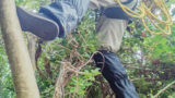 ランヤードで木から落ちない様に体が結ばれているので、下の様なポーズも取ることが出来ます。