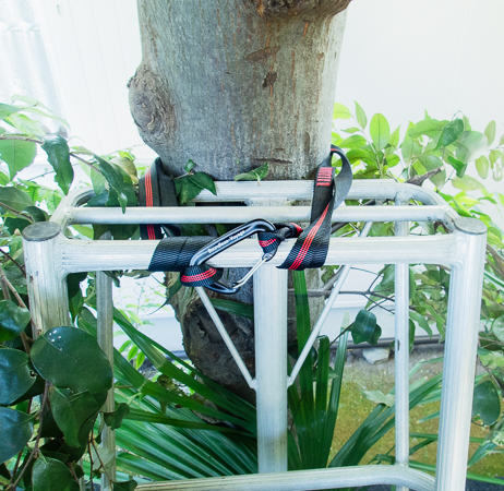 スリングで幹に固定するだけで安定するので、使い勝手が良くなります。