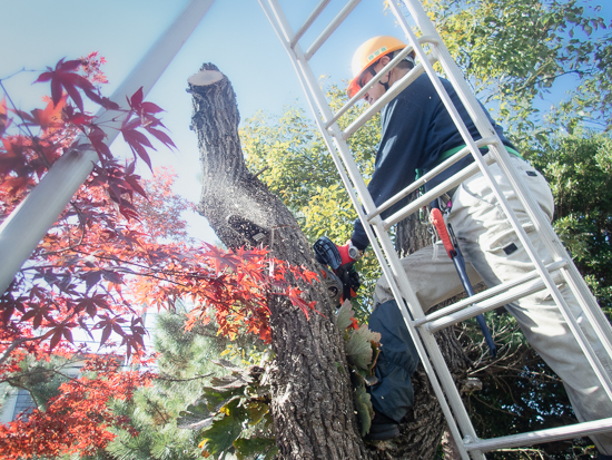 この背の高い柏の木は、手際よく切り進めることができました。